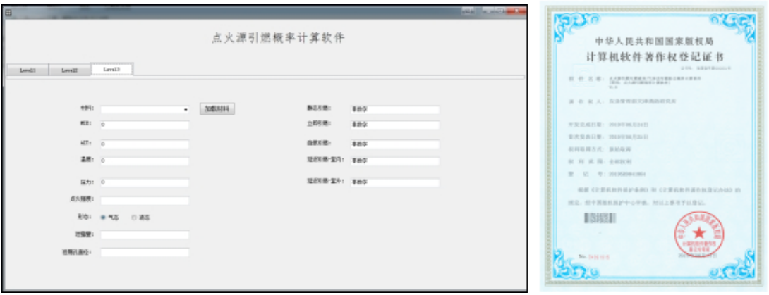 可燃液体/气体泄漏场景下引燃概率计算软件依托国家重点研发计划课题“典型点火源表征方法及能量谱技术”(课题编号:2017YFC0804703),针对可燃液体/气体等危险化学品泄漏场景,从点火源本身特征与引燃物质危险特性角度,给出了立即点火和延时点火引燃概率的确定方法和计算模型,形成了多情景模式下的点火源引燃概率计算方法,用于火灾爆炸场所典型点火源有效性评估,解决了爆炸性环境下点火源引燃概率的量化问题,可为火灾爆炸事故调查和爆炸性环境点火源控制提供技术支撑。