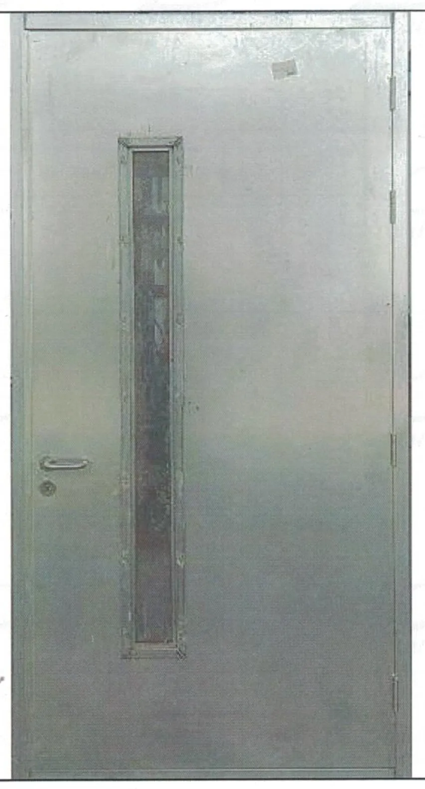 【图示4】双扇防火门注:在双扇防火门中,左侧门扇用插销固定,右侧门扇通过锁舌固定于左侧门扇锁孔。