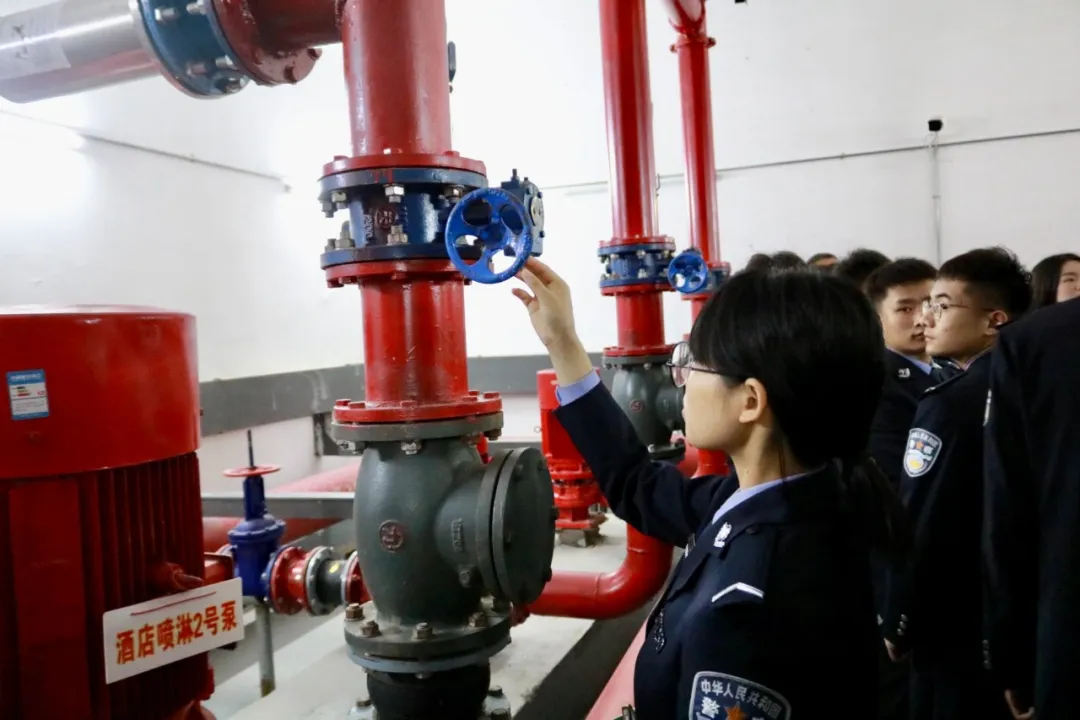 在消防水泵房,同学们实地学习了各类消防设备的运作流程,感受到了消防工作的严密与复杂。随后来到消防中控室,通过对控制室内各种监控系统和通讯设备的操作学习,同学们对如何在紧急情况下进行有效的信息收集和指令发布有了更深刻的理解。