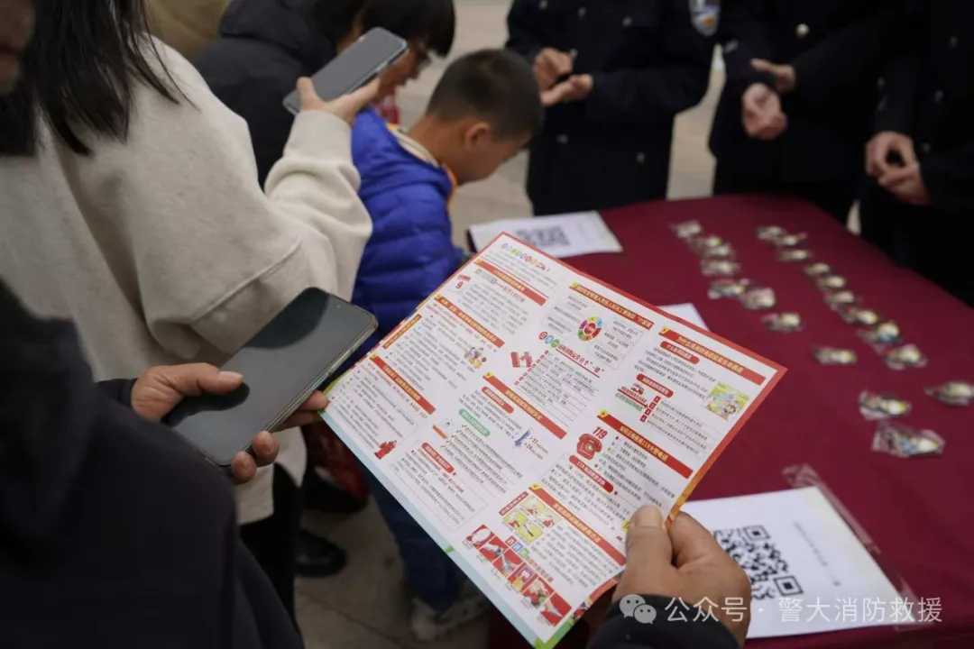 消防知识宣传区设置了四个易拉宝展示板,详细介绍了家庭火灾预防措施、火灾发生时的应急逃生路线规划、如何正确拨打火警电话以及日常生活中如何进行火灾隐患排查等内容。展示板上图文并茂,内容通俗易懂,吸引了众多市民驻足观看,特别是有小孩的家庭,他们对这些生动的消防安全知识表现出了浓厚的兴趣。社团的学生们还向市民发放了消防安全手册和灭火器钥匙扣纪念品,手册中包含了丰富的消防安全知识和实用的自救互救技巧,帮助市民在遇到火灾时能够更加冷静和有效地应对。