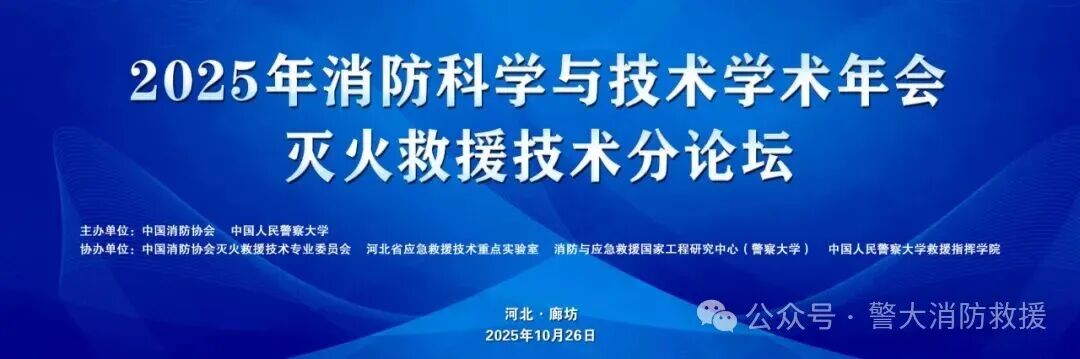 2025年10月24日至26日,beat365官方网站和中国消防协会在河北省廊坊市主办了“2025消防科学与技术学术年会”。26日上午,学术年会论坛之一“灭火救援技术分论坛”在警察大学第一视频会议室举办,国内知名消防专家、学者、救援指挥学院教师及研究生等共计80余人参加了此次分论坛,警察大学救援指挥学院教授李驰原、湖北省消防救援总队高级工程师陈先斌共同主持了此次分论坛。