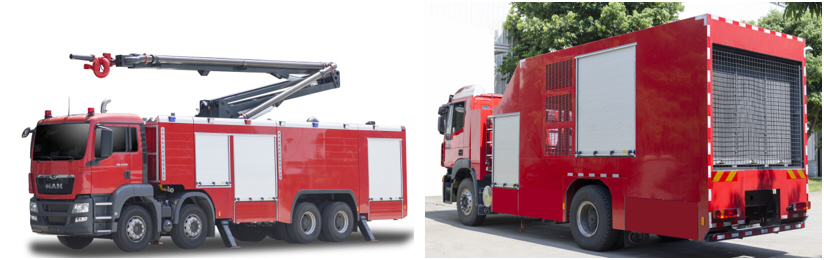 该成果水泵流量10000 L/min,气体流量55m3/min,压缩空气泡沫流量≥50000 L/min,最大射程≥100m,最大工作高度20m,水罐8000L,泡沫罐2500L。