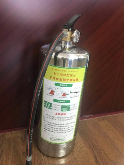 该装置喷射出的吸收剂相比常用材料具有以下优势:1.超强的吸收能力。检测证明,该产品对常用有机液体的吸收倍率可达10倍左右。在处理泄漏事件时,由于其吸收量大,只需少量产品就能完成处理工作,节省人力物力。2.吸收范围广。能吸收几乎所有的液体有机化学品,包括汽油、苯类、脂类、酮类等各类危险液体有机化学品。3.吸收速度快。本材料吸收极快,一般情况下,能在几分钟内吸收至饱和状态。